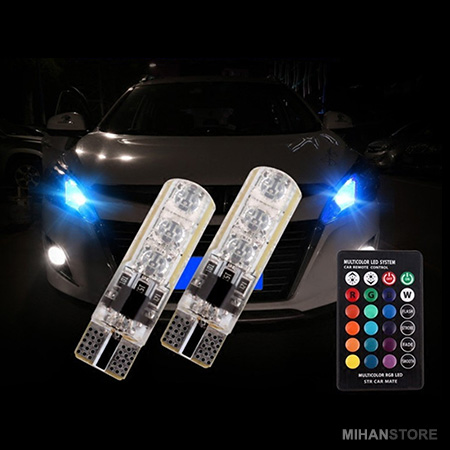 لامپ خودرو مدل Multi Color قابل نصب برای انواع چراغ کوچک, چراغ پلاک و کلیه سوکت های سکن با پایه آریایی دارای ریموت برای تغییر رنگهای لامپ و یا روشن و یا خاموش کردن و یا کم و یا زیاد کردن و حالت چشمکزن نور لامپها را دارد و مناسب برای انواع خودرو سواری و سنگین و همچنین موتورسیکلت میباشد. لامپ خوردو مدل Multi Color با لامپهای LED شش عددی باروکش ژلهای با نوردهی بسیار عالی و ریموت کنترل جهت تغییر رنگ و حالتهای نور با تولید گرمای بسیار ناچیز و مصرف بسیار کم یکی از محصولات حرفهای و بسیار پرطرفدار در نورپردازی خودرو است.