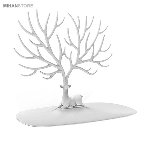آویز زیور آلات طرح گوزن یک وسیله بسیار کاربردی برای آویز کردن جواهرات یا دیگر لوازم است که علاوه بر کاربردش به عنوان وسایل دکوراتیو منزل نیز می توانید از آن استفاده نمایید. شاخ های طراحی شده برای این گوزن به شکل درخت و زیاد هستند تا بتوانید با خیال راحت تمامی جواهرات خود را یا به شاخه ها آویزان کنید و یا درون سینی پایه آن قرار دهید. جنس این محصول از پلاستیک درجه یک و با کیفیت می باشد بنابراین نگرانی بابت افتادن یا شکستن آن نخواهید داشت. آویز جواهرات گوزن تنها برای خانم ها نبوده و آقایان نیز می توانند برای نگهداری ساعت، انگشتر، کیف پول، کلید و ... از این محصول استفاده نمایند.