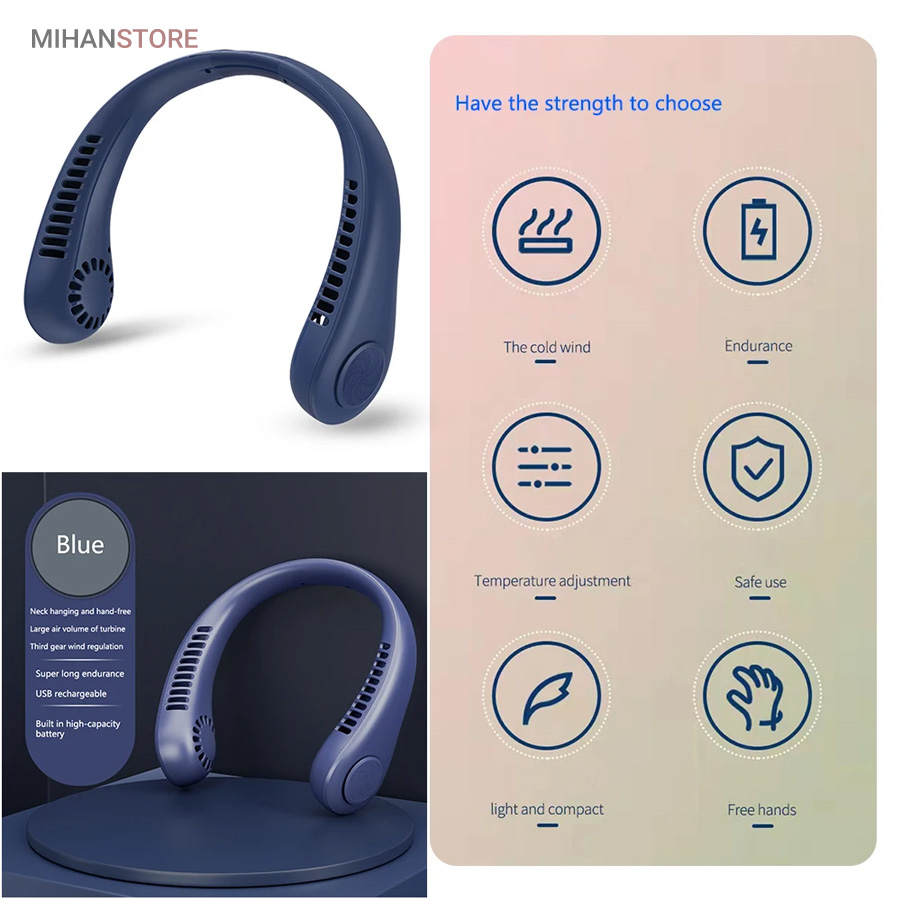 این پنکه همراه به وسیله شیارهای متعددی که روی بدنه خود دارد میتواند سر، صورت و گردن شما را خنک کند و شما را از یک هوای گرم نجات ببخشد. این فن راه اندازی سختی هم ندارد و بهراحتی با فشردن تنها یک دکمه فعال خواهد شد. همان دکمه میتواند دما را برای شما کم و زیاد هم کند. سرعت این پنکه در سه حالت قابل تنظیم است که میتوانید بنا به نیازتان و میزان گرما از آنها استفاده کنید. موتور این پنکه پر قدرت بوده و بیصدا است. این پنکه با اتصال سیم usb به یک شارژر شارژ میشود و نیازی به باطری با سیم همراه ندارد، از این رو شما میتوانید از این پنکه گردنی همراه در هرمکانی که دوست دارید استفاده کنید. با توجه به جنس و وزن کم این محصول اصلا ضرری را به گردن شما متحمل نمیشود. این پنکه به راحتی با زاویه صورت قابل تنظیم است. از طرفی این پنکه بازوهای قابل انعطاف داشته و منعطف است. بنابراین اندازه دلخواه را میتوانید به راحتی تنظیم کنید.