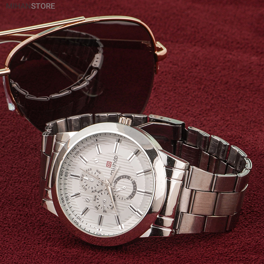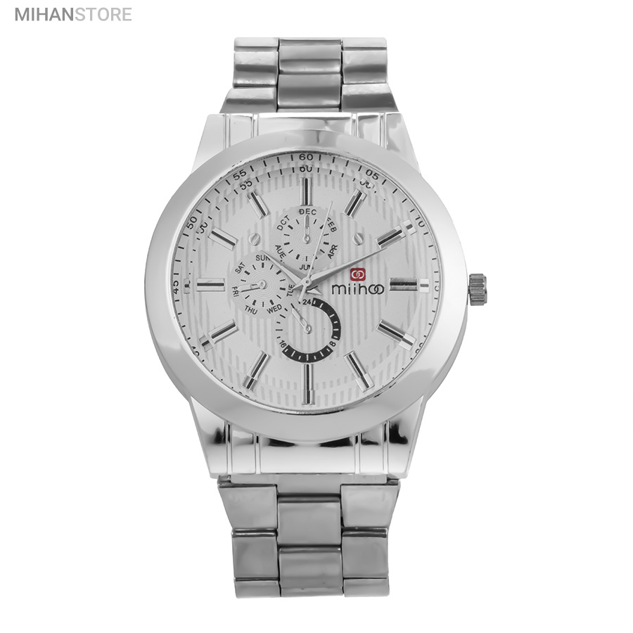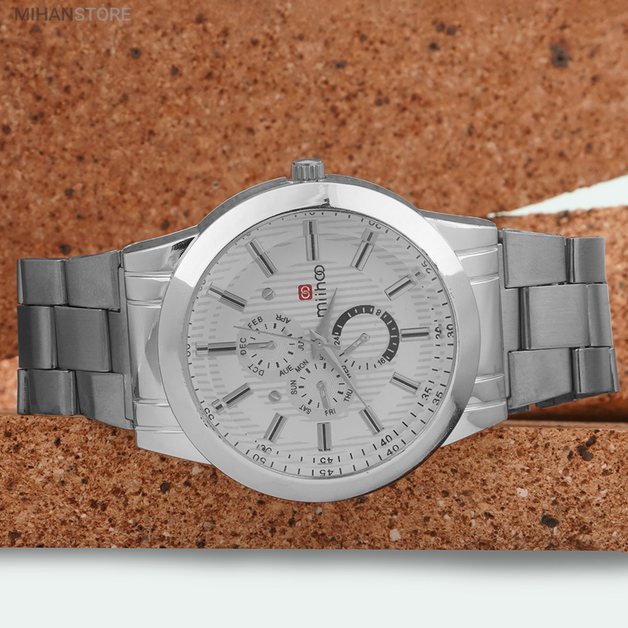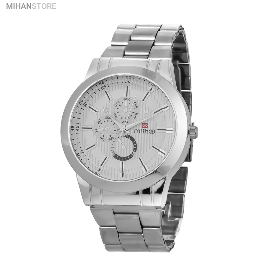 ساعت مچی مردانه MIHOO TIGER یک ساعت شیک فلزی با بند بافت فلزی با رنگ نقره ای در رده ساعت کلاسیک اسپرت می باشد و تکمیل کننده استایل خاص شما خواهد بود. این ساعت طرح 3 موتوره می باشد و بسیار خوش ساخت و با کیفیت تولید شده است، این محصول همراه با یک جعبه شکیل ارسال خواهد شد.