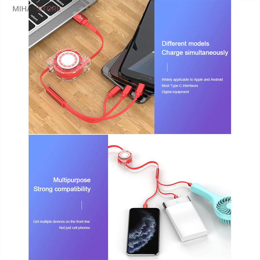 ویژگی های کابل فست شارژ USB جمع شو 3in1: