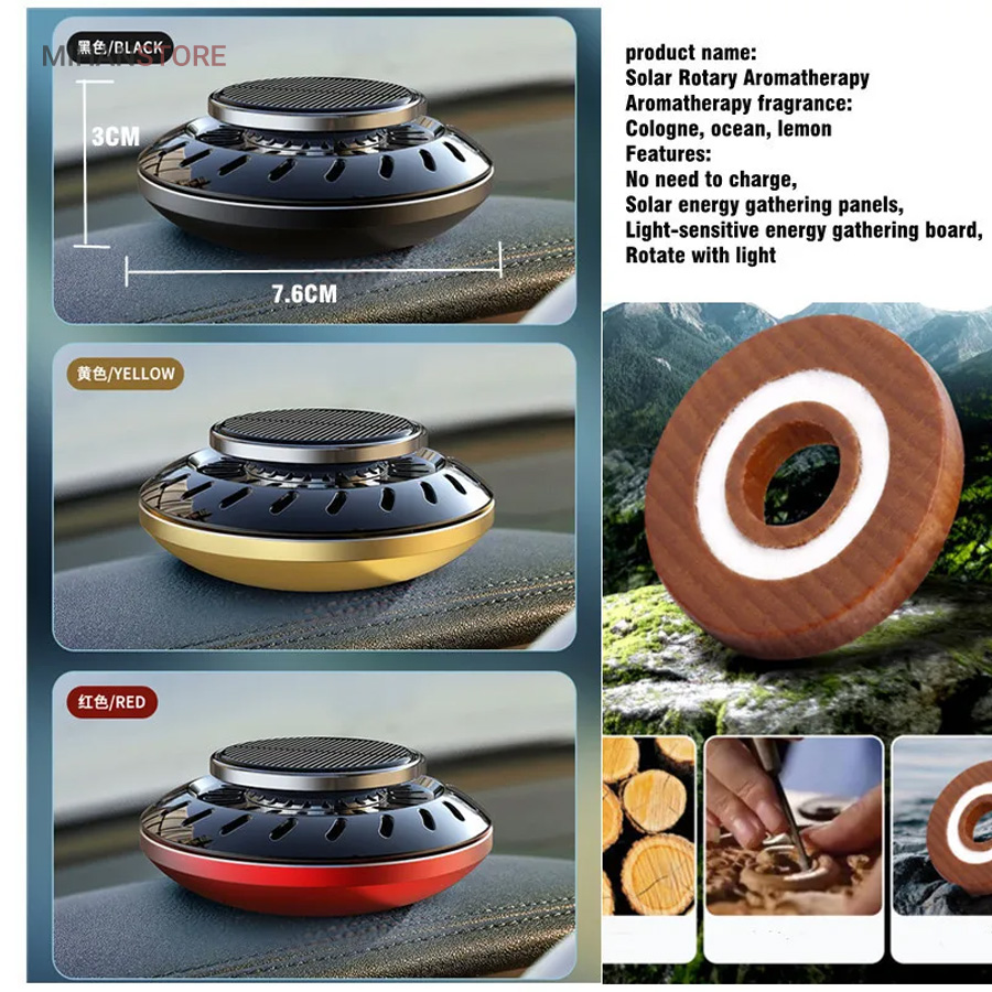 رایحه‌ی خنک و طبیعی از گل‌ها، گیاهان و میوه‌ها رو با خودتون به هر جایی که دوست دارید ببرید!!! با خوشبو کننده خورشیدی، بوی نامطبوع خودروتون رو فراموش کنید و همیشه هوای تازه و خنکی رو در داخل خودروتون حفظ کنید.طراحی بی‌نظیر و جمع‌ و‌ جورش باعث می شود همیشه در دسترس باشه و به سادگی می‌توانید روی داشبورد ماشینتون بگذارید. همچنین این خوشبو کننده، قابلیت پخش 360 درجه رو دارد، پس میتوانید مطمئن باشید هوای تازه در هر نقطه‌ای از خودروتون حفظ می شود. برای استفاده در شب یا روزهایی که هوا ابری است رایحه از سوراخهای شیار مانند که روی آن طراحی شده خارج می‌شود و نگران این موضوع نباشین.