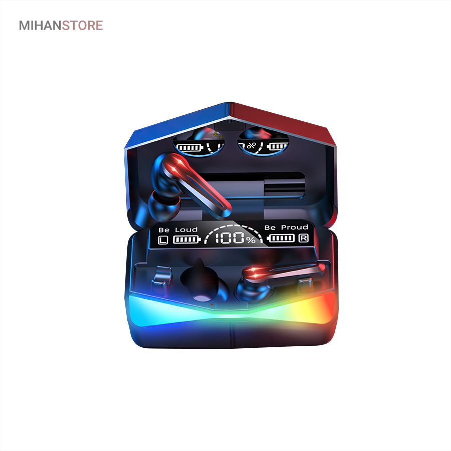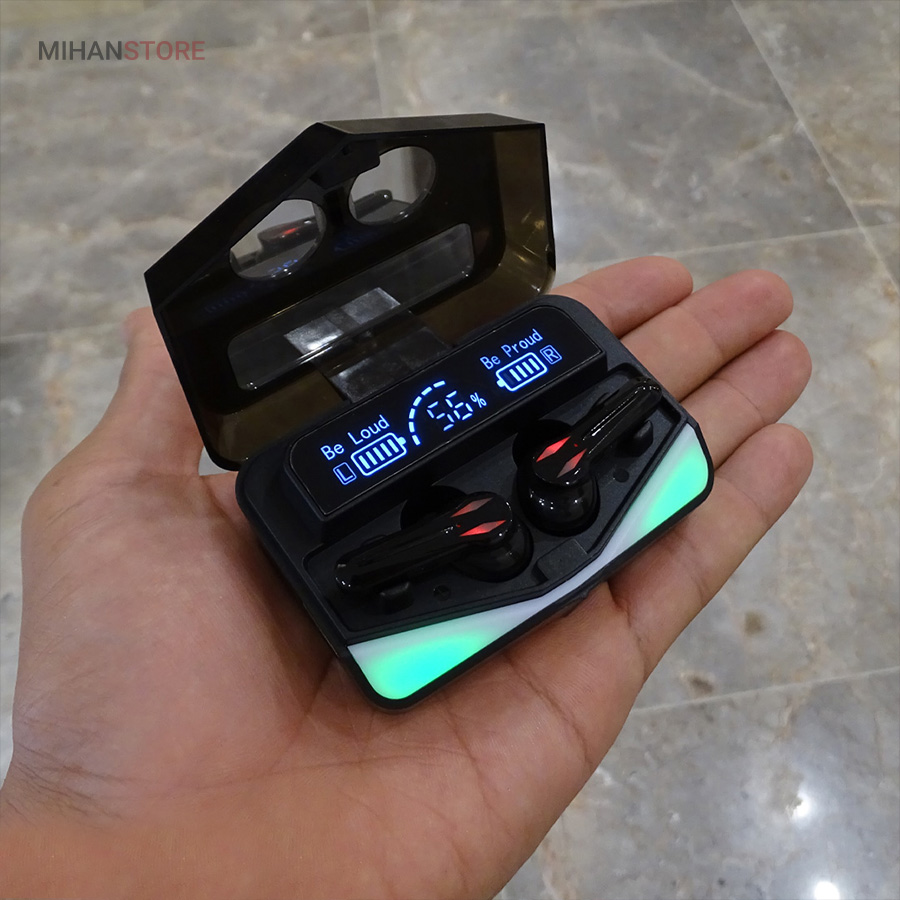 با وجود کیفیت فوق العاده صدا و میکروفون ی که دارد برای گیم عالی است و تجربه جدیدی از شنیداری را برایتان فراهم میکند؛طراحی ظاهری این هدست بسیار جذاب و شیک است به طوری که مجذوب زیبای ان خواهید شد،همراه گوشی های این هدست یک کیس یا همان محفظه شارژ وجود دارد که علاوه بر نگهداری ان گوشی های شما را شارژ میکند.این محفظه دارای طراحی نوری است که جذابیت ان را چندین برابر نموده است؛این کیس میتواند میزان شارژ ایرپاد ها وخود کیس را به شما نشان دهد و با وجود صفحه دیجیتالی بسیار شیکی بر روی بدنه ی  ان است جذابیت این هندزفری بیشتر و بیشتر شده است.