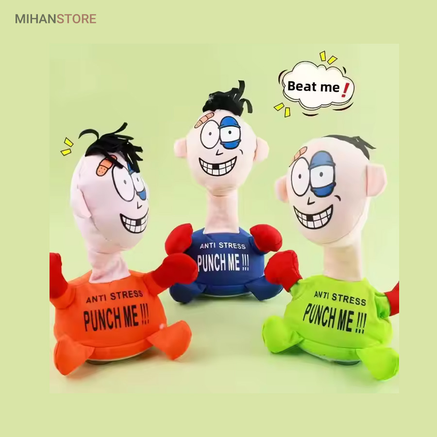 یک عروسک سرگرم کننده برای کودکان و حتی برای بزرگسالان. این عروسک کتک خور منحصر به فرد قطعا یکی از جدید ترین و جالب ترین عروسک هایی خواهد بود که تا به امروز با آن مواجه شده اید. این عروسک حیرت انگیز به راحتی می تواند تا ساعت ها کودکانتان را سرگرم کند و حتی می تواند هرازگاهی موجب پر شدن اوقات فراغت شما شود. عروسک مشت خور یک اسباب بازی سرگرمی از جنس پولیش و پارچه میباشد. پاهای عروسک دارای 4 عدد چسبونک است که به زمین میچسبد و شما میتوانید با مشت زدن به صورت و بدن این عروسک استرس، عصبانیت و انرژی منفی خود را تخلیه کرده و به آرامش برسید. گردن عروسک مشت خور حالت فنری ارتجاعی دارد که با هربار ضربه به سر به جای خود باز میگردد علاوه بر این ها با هربار مشت زدن به عروسک صدا دادو فریاد از خود تولید میکند. ارتفاع عروسک_مشت_خور ۲۵سانت بوده و با دو باتری قلمی شروع به کار میکند.