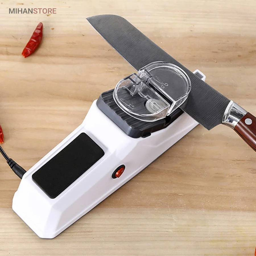 محصولی پرکاربرد که وجود آن در هر آشپزخانه ای لازم است. چاقو تیز کن برقی در کوتاه ترین زمان ممکن سطح انواع لوازم نوک تیز مانند کاردهای گوشت بری، میوه بری و حتی قیچی را تیز خواهد نمود که این امر سرعت کار پخت و پز و خیاطی شما را افزایش خواهد داد. وجه تمایز این نمونه با نمونه های قدیمی، کوچک و قابل حمل بودن محصول است. همچنین در بخش قرارگیری چاقو کاور محافظ قرار داده شده تا از آسیب احتمالی جلوگیری نماید. دستگاه چاقو تیز کن با کابل USB شروع به کار می کند و جنس دسته و بدنه آن از پلاستیک مرغوب است.