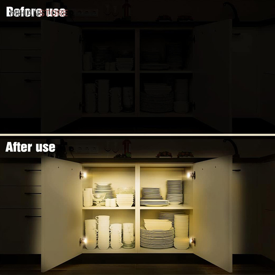 حتما شما هم در برخی مواقع که لازم بوده است از داخل کمد و یا کابینت منزل خود چیزی بردارید بخاطر تاریک بودن محیط داخلی کمد نتوانسته اید و لوازم داخل کمد را به هم ریخته اید.  در حالی که اگر قسمت داخلی کمد نور کافی داشته باشد می توان براحتی وسیله مورد نظر را پیدا کرد و برداشت.یک محصول بسیار جالب و زیباست که می‌تواند به کابینت آشپزخانه شما جلوه‌ای زیباتر و جذاب‌تر دهد. لامپ داخل کابینت آشپزخانه به آسانی نصب می‌شود و می‌توانید علاوه بر کابینت در انواع کمد نیز از آن استفاده کنید. این چراغ به سبب خاموش و روشن شدن خودکار و اتوماتیکی که دارد نیازمند تعویض باطری به طور مکرر نیست. این لامپ برای تامین انرژی موردنیاز از 1 عدد باطری استفاده می‌کند. لامپ داخل کابینت اشپزخانه از جنس پلاستیک است و دارای  3 عدد LED است. رنگ این لامپ سفید است و به لطف 3 عدد LED بسیار قوی که دارد می‌تواند فضای کابینت و وسایل آشپزخانه شما را روشن کند. در ادامه در رابطه با نصب چراغ داخل کابینت و نحوه کار لامپ داخل کابینت آشپزخانه صحبت خواهیم کرد و نحوه استفاده از لامپ داخل کابینت آشپزخانه را شرح خواهیم داد.