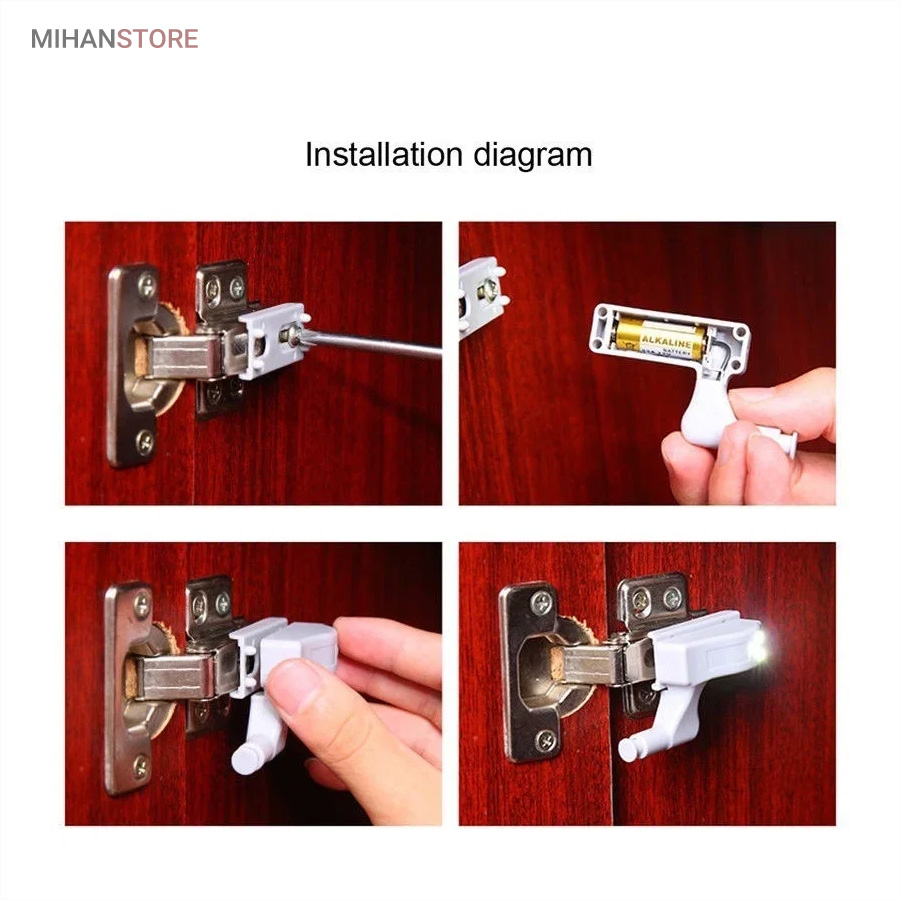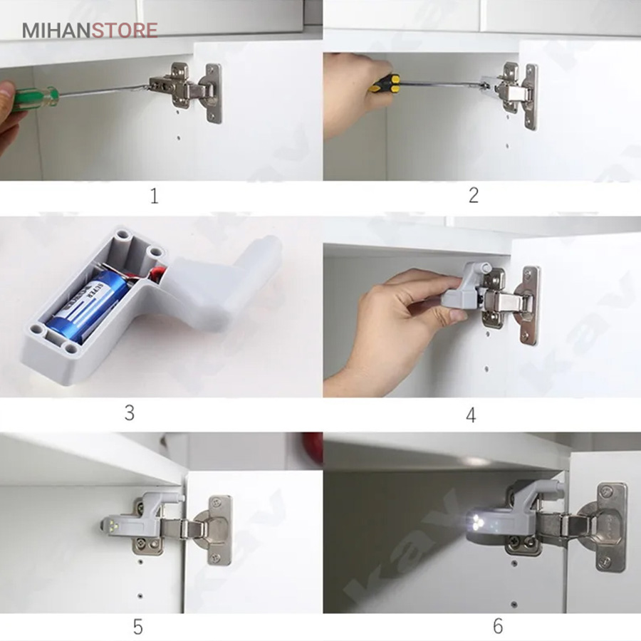 نصب چراغ داخل کابینت بسیار ساده و آسان است و می‌توانید به راحتی آن را داخل کابینت یا کمد نصب کنید. لامپ داخل کابینت اشپزخانه دارای یک پایه نگهدارنده است که همراه با خود چراغ در بسته بندی موجود است. در مرحله اول شما باید پیچ داخلی لولای کابینت را باز کنید سپس این پایه نگهدارنده را روی آن قرار دهید و پیچ را روی آن ببندید تا پایه روی لولای کابینت قرار بگیرد. سپس باطری وارد چراغ می‌کنید و چراغ را روی پایه نگهدارنده قرار می‌دهید.البته شما می‌توانید از این چراغ در انواع کمدهای داخل منزل استفاده نمایید.