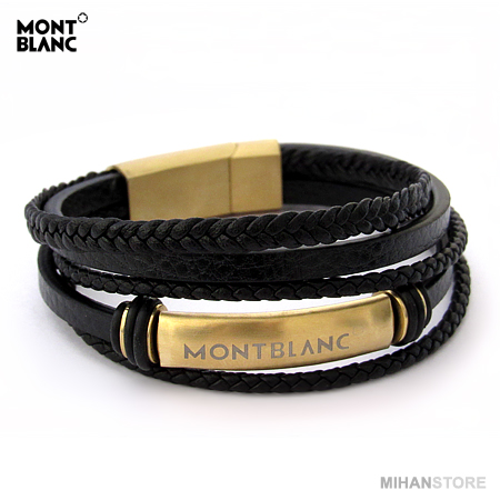 دستبند چرم طرح Montblanc نمونه‌ای از زیورهای ظریف و در عین حال پرطرفدار از جانب آقایان و خانم ها است که با اکثر رنگ‌های لباس همخوانی داشته و در عین حال متفاوت دیده می‌شود. این دستبند فوق العاده شیک از پنج لایه چرم به صورت ساده و بافته شده و نماد زیبای برند Montblanc با رنگ های لوگو مشکی و طلایی عرضه شده است.